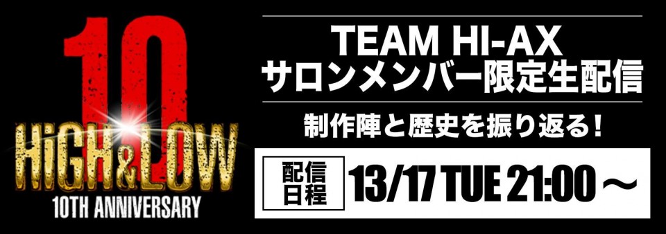 『HiGH&LOW 10th ANNIVERSARY』を記念して、久しぶりのTEAM HI-AX生配信を実施いたします!