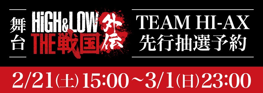 TEAM HI-AX先行抽選予約は2/21(土)15:00~開始いたします!