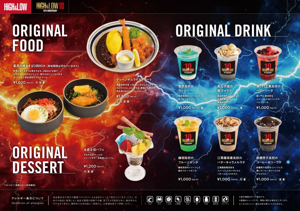 また、「HiGH&LOW 10th ANNIVERSARY スペシャルコラボレーションカフェ PHASE-2」のメニュー&ノベルティも解禁!